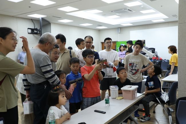 小朋友们在屏幕前排队,跃跃欲试,挑战成为元宇宙中的神枪手。这个展区巧妙地结合了虚拟与现实,为参与者带来了一场创意十足的互动体验。