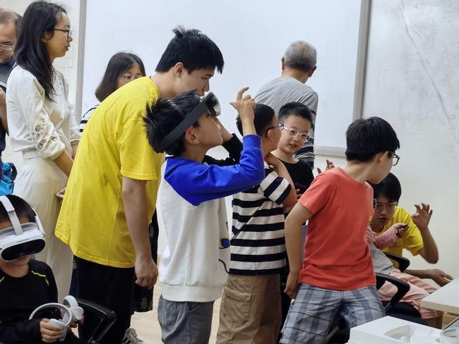 志愿者耐心给小朋友讲解VR现实中看到的世界,引领着小朋友们进入了一个全新的虚拟世界,让他们体验到科技带来的无限可能性。志愿者的耐心解说和引导,让孩子们在玩耍中获得了知识和启发,为他们打开了一扇通往科技未来的大门。