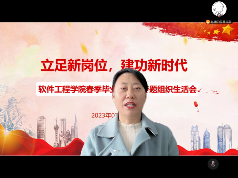 2023年3月16日上午,bat365中文官网入口举行2023届春季毕业生党员离校教育活动。本次会议的主题为“立足新岗位,建功新时代”。学院党委副书记曹桂涛、专职组织员陈励、辅导员丁金花以及全体毕业生党员参会。会议由学院2020级专业学位硕士研究生第二党支部书记陈闽主持。
