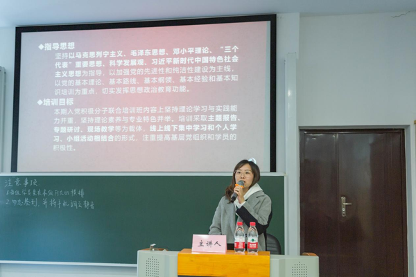 陈励介绍本次培训的总体情况和课程安排,并强调培训纪律。本次培训以马克思列宁主义、毛泽东思想、邓小平理论、“三个代表”重要思想、科学发展观、习近平新时代中国特色社会主义思想为指导,以主题报告、专题研讨、现场教学等为载体,通过集中学习和个人学习、小组活动相结合的形式,引导同学们增强学习的主动性和积极性,进一步端正入党动机,提高自身党性修养。