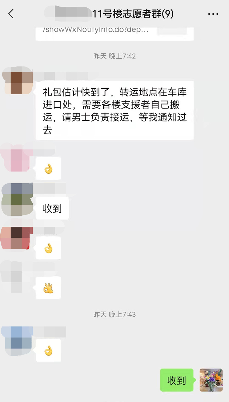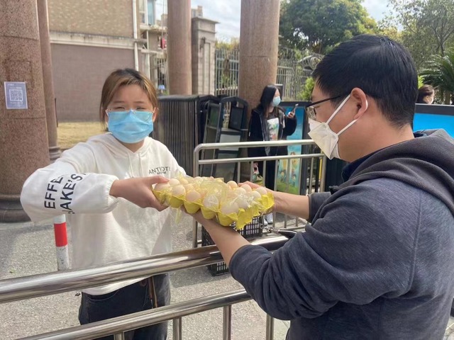 国家工程中心党支部支委施永昌所在小区一直处于“决赛圈”。在物资购买困难时,他连续几天6点早起去菜市场,主动为在校内坚守抗疫的教师家属代购物资,同时代表支部为居住在嘉定区江桥镇、宝山区等封控区域的员工送去生活必需品。当看到隔离人员露出期盼的眼神时,他也被感动了,“愿疫情早日结束,回归正常生活”。