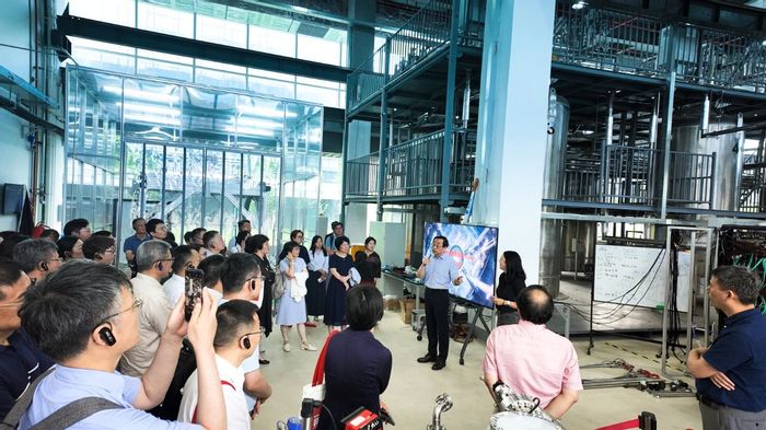 问天路漫,上下求索。在距滴水湖国际软件学院一小时车程的上海交通大学李政道研究所,参会校领导和研修班学员参观学习李政道研究所科研版图、海铃实验室和暗物质实验室,直接感受李所聚焦最基本的科学问题和建成世界顶级科学研究机构的建设目标和发展愿景。李政道研究所所长、中国科学院院士张杰全程陪同参观并讲解。