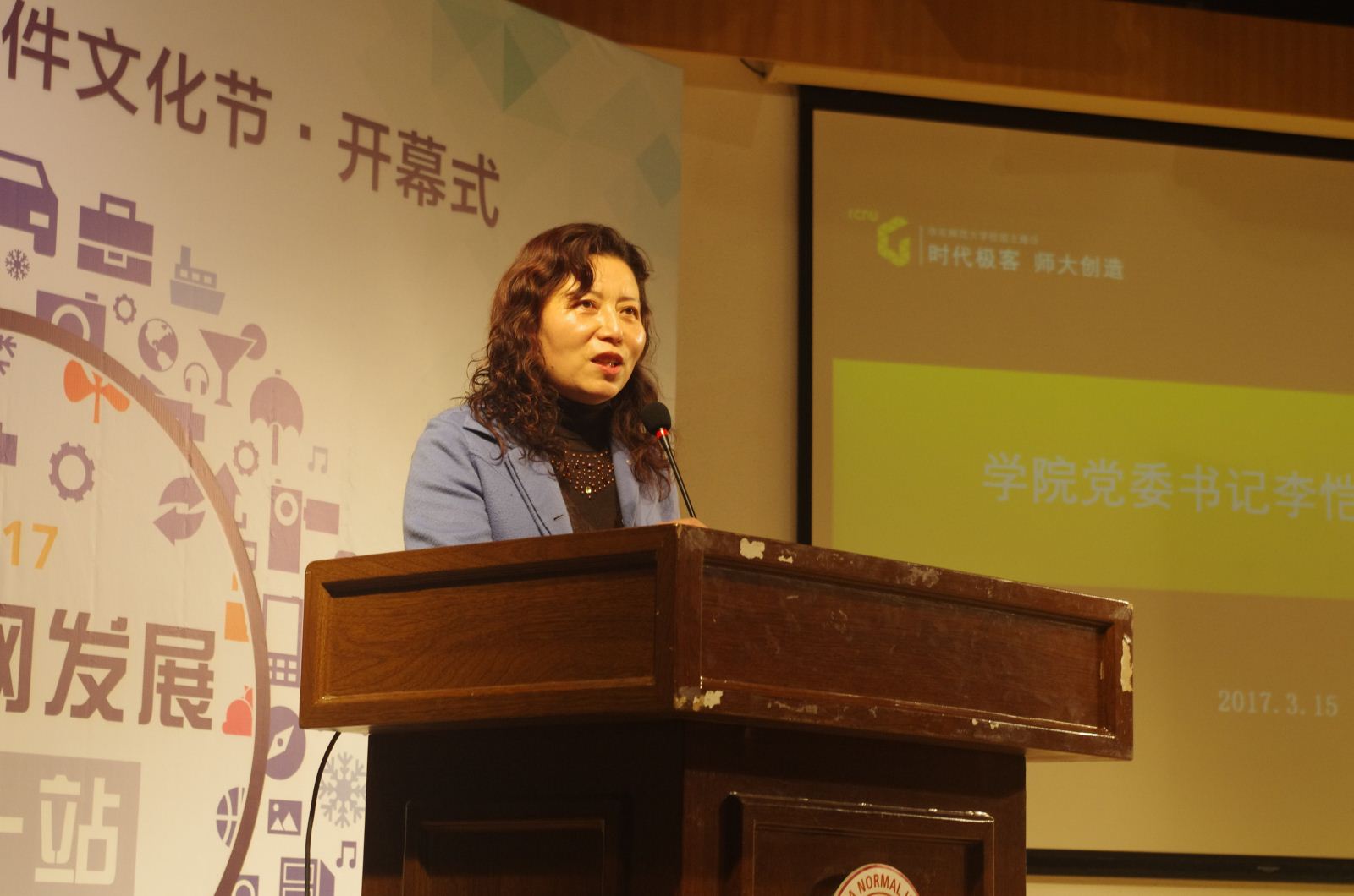 在一段精彩的开场视频后,学院党委书记李恺为开幕式致辞。李恺书记结合“互联网发展下一站”这一主题和同学们分享了她的两点体会:互联网发展的下一站是值得我们青年人去思考和认知的未来;互联网发展的下一站是需要我们青年人去实践和探索的未来。李书记简要讲述了当前信息技术革命为人类生活带来的剧变,并以此鼓励同学们以积极的面貌思考如何让自己做得更好,绝不辜负这个时代。