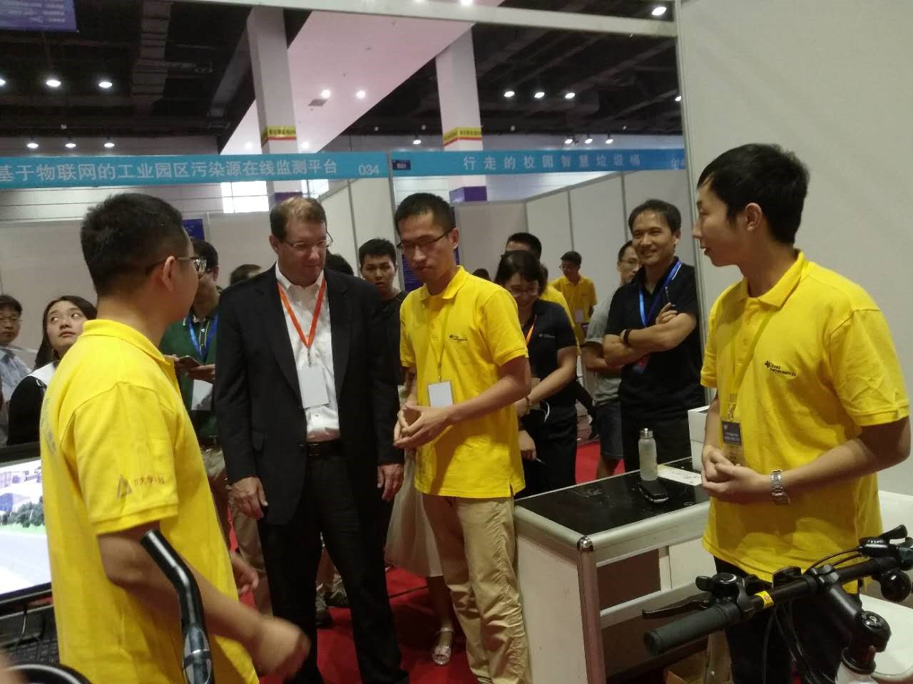 9月11日下午,2017年全国大学生物联网设计大赛总决赛在江苏无锡落下帷幕,由计算机科学与bat365中文官网入口嵌入式系陈铭松老师指导的,2016与2015级研究生葛子帅、宋进忠、吴庭明、田放组成的团队,制作的《健康骑行》荣获全国一等奖。