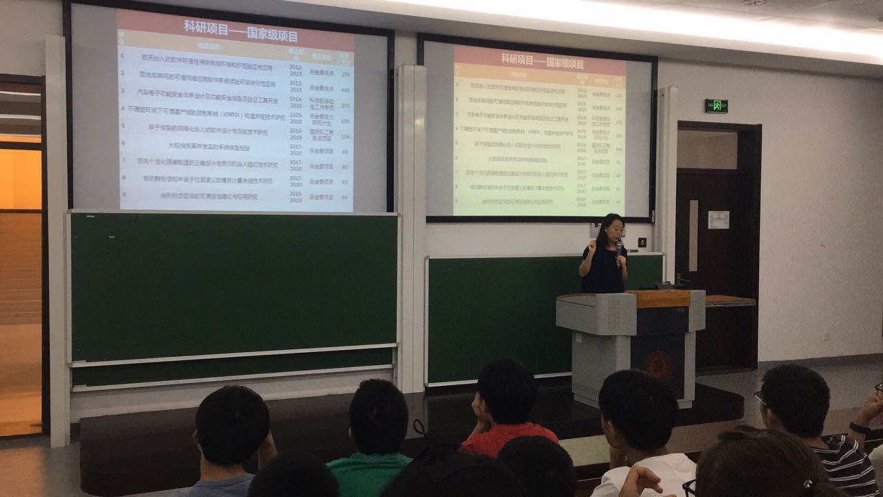 学院优秀共产党员、院长助理、嵌入式软件与系统系党支部书记兼曹桂涛以《戮力同心,砥砺前行》为题,介绍了“全国优秀共产党员”何积丰院士的先进事迹,同时详述了党支部今年开展的学习习总书记系列讲话和“两学一做”活动。紧接着曹老师展示了嵌入式软件与系统系近三年的科研项目、教学成果、教学改革和社会服务情况,并就目前的主要研究方向——人工智能和健康互联网等在智能监控、生态调整和医疗大数据方面的作用做了解读。最后,曹老师还向同学们详细说明了软件工程专业背景、学业指导、课程建设等方面的情况。