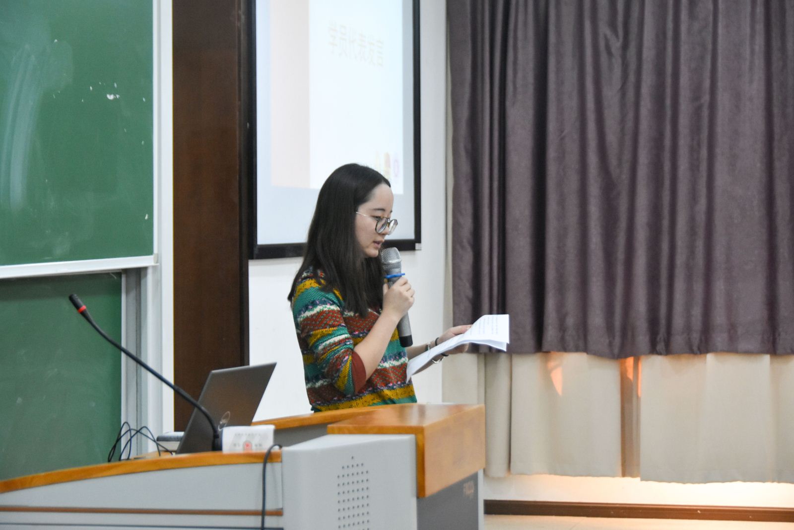 接下来是本届党章学习小组代表、计算机系研究生史夏琰同学发言,史夏琰同学表示,我们应该抓住机会,克服障碍,积极进取,并在实际生活中将理论知识实验运用,从而提高同学们的思想觉悟。同时,史夏琰同学作为代表,为按时参加党课、及时上报思想报告等事项做出了保证。