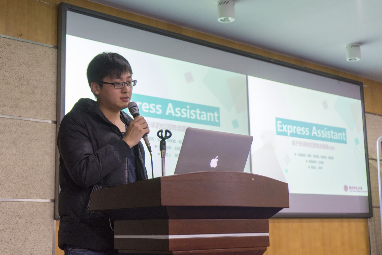 接下来是同样紧张激烈的应用组比赛。智能导航眼镜借鉴谷歌的创意,开发了一个可穿戴设备,解决了骑车、走路导航的安全问题,拿下一等奖。“E-Transport基于O2O的空闲载荷共享平台的设计与开发”主要目的是推进同城小微型物流行业发展,实现城市内部空闲载荷资源利用最大化;基于安卓的校园物流服务app开发团队开发了一套完善的系统,保证了物品从到站、摆放、通知、核对、领取等各个环节中的安全性和可溯源性,最大程度上减少学生和学子驿站带来的损失,这两个项目荣获二等奖。沈建华老师对应用组的团队作品作了精彩点评,对各组的创新之处给予了肯定,同时希望各组对于好项目一定要坚持下去,不要为了比赛而临时去做一个项目。
