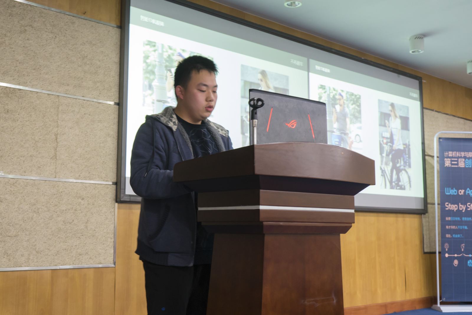 比赛开始前,学院副院长姜宁康向各位到来的嘉宾表示欢迎,感谢了赛事的组织者,表示学院始终致力于同学们的创新能力培养,积极搭建各类锻炼的平台,鼓励同学们应当顺应潮流,充分发挥才智,不断提升自己创新素养。教务处副处长徐世猛随后致辞,他向大家介绍了教务处对于科创培育的扶持力度,并建议同学们去尽可能地与其他的同学多交流,跨学科的组合更容易碰撞出创意。