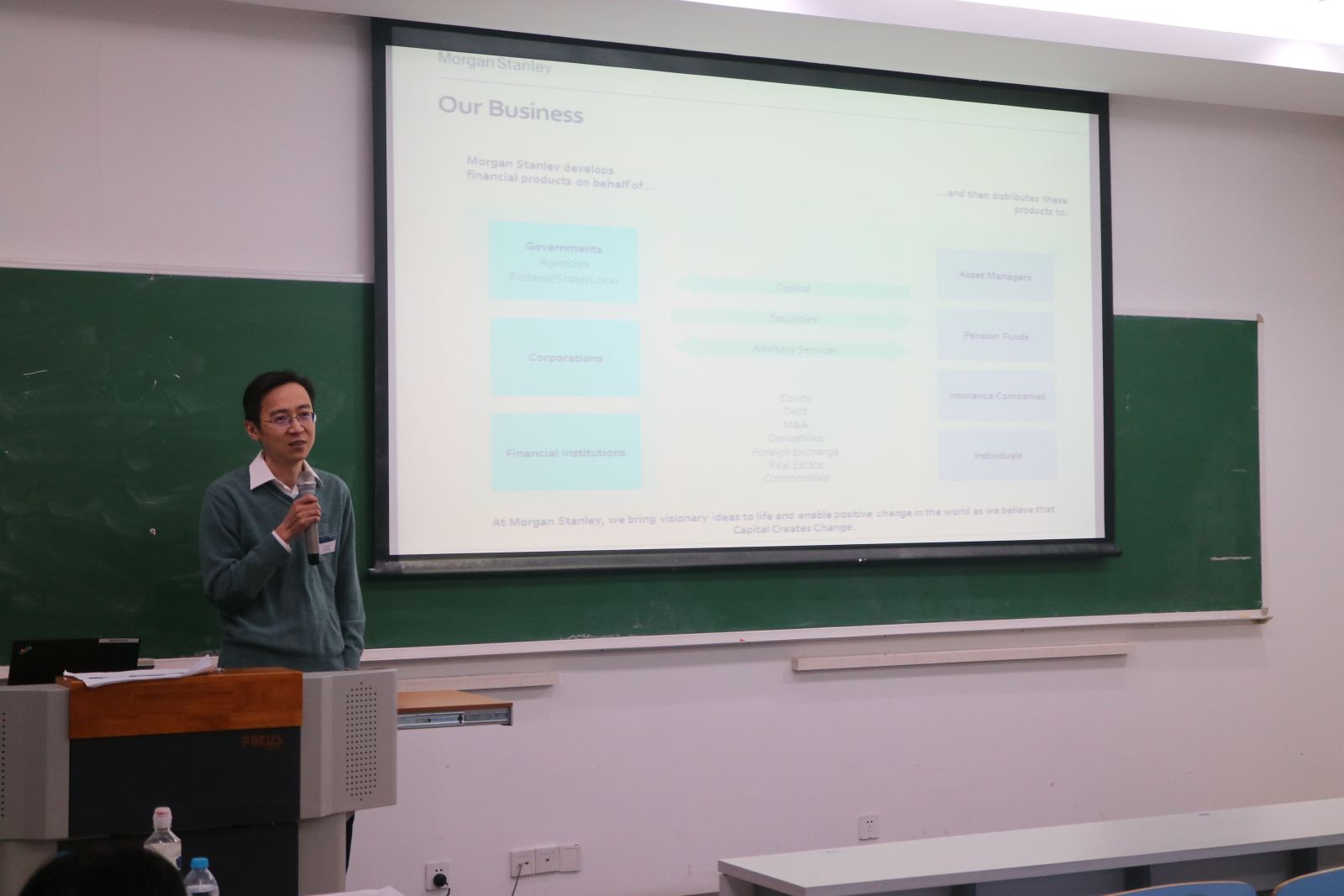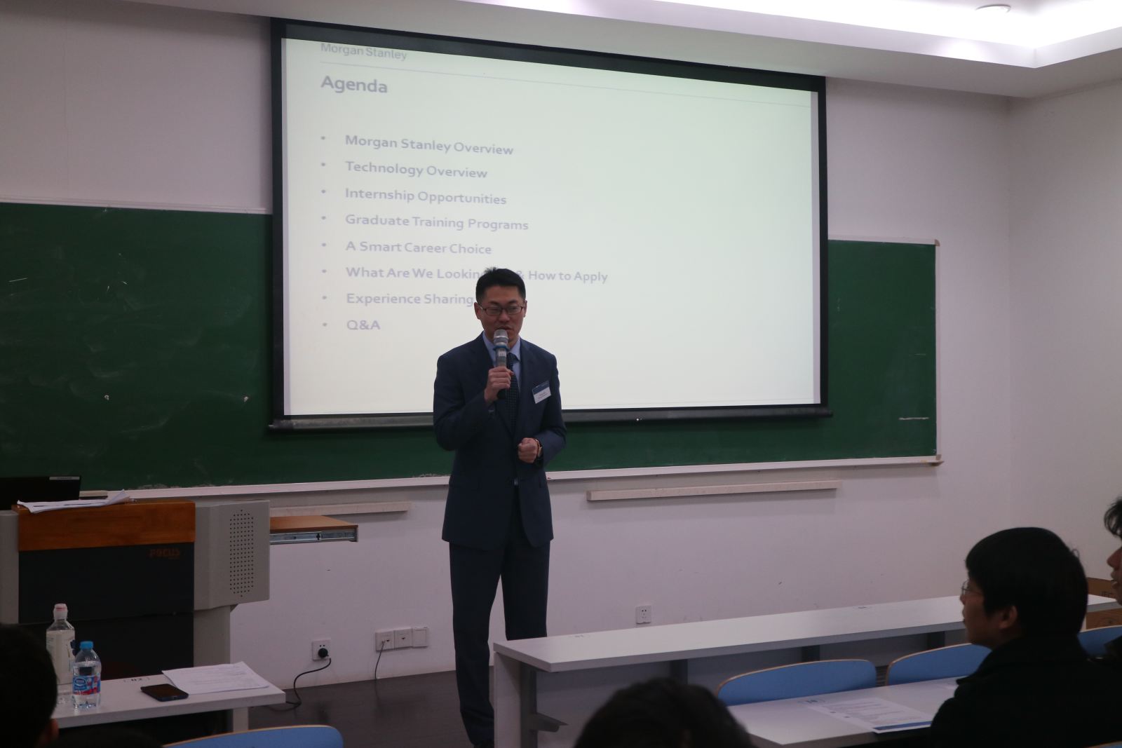 首先,摩根士丹利人力资源部Willson先生详细阐述了本次宣讲的流程。他诙谐幽默的自我介绍获得了同学们的热烈掌声。