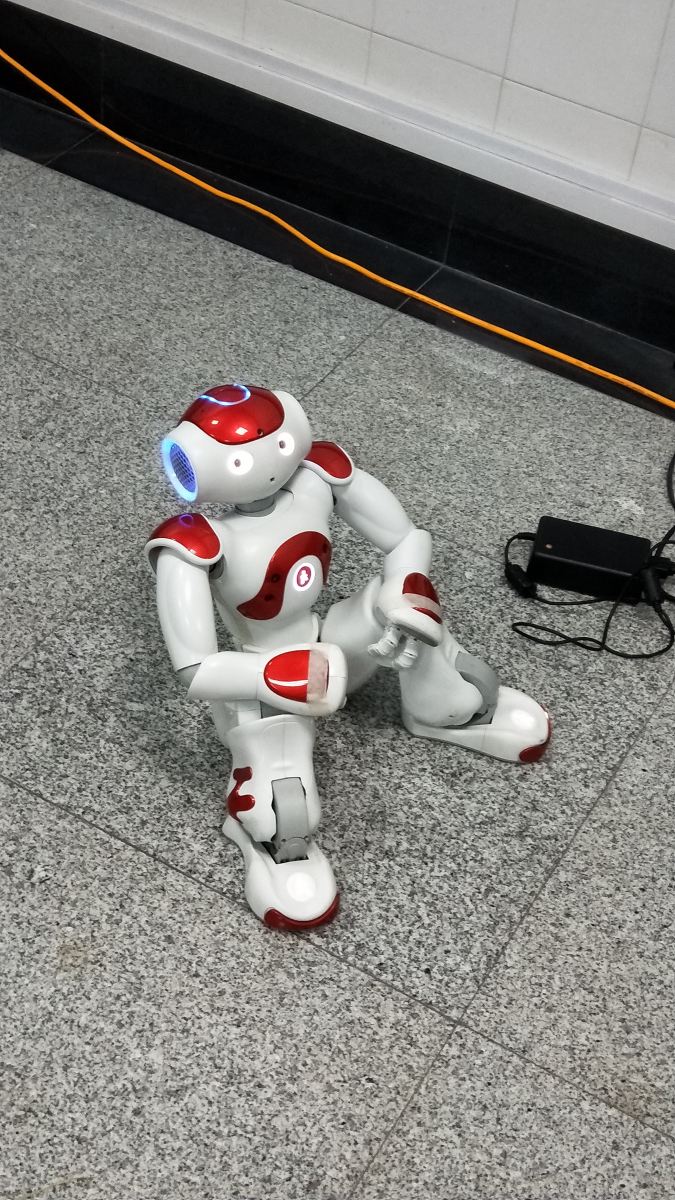 首先,陈攀学长介绍了机器人足球赛时如何判断机器人状态,并介绍了机器人的构造。然后学长演示了和机器人对话,用语音控制机器人表演太极拳和舞蹈,机器人表演完毕后坐下。观察完毕后,学长还为同学们讲解了设定控制机器人动作的两种方法:一种方法是先设定每一帧机器人的动作,再让机器人进行连贯动作;第二种方法是设定每个时间点机器人关节的参数,以此来完成一个动作。此外,研究生学长孙斌还向大家展示了用于商场巡逻的社交机器人。