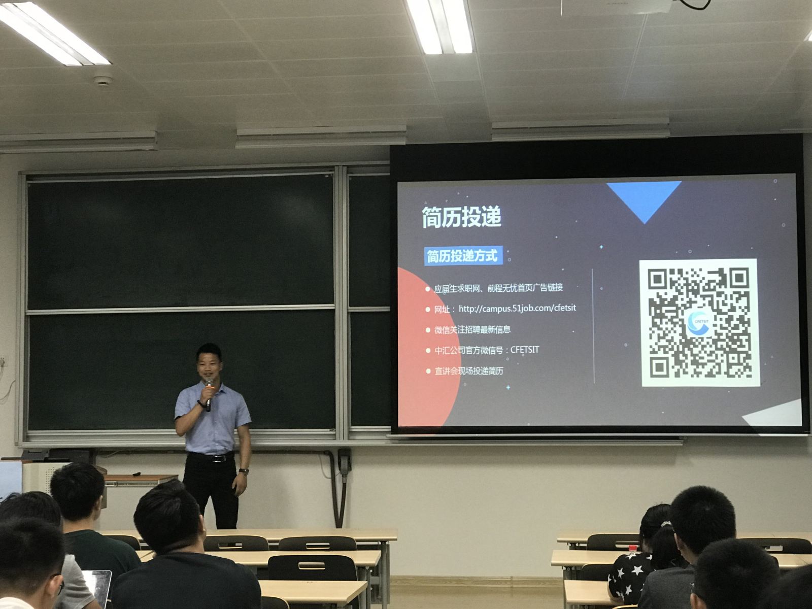 9月21日晚,中汇信息技术2019校园招聘宣讲会在bat365在线平台官网田家炳教育书院222教室举办。中汇信息技术有限公司人力资源总经理助理黄德钢先生以及毕业于bat365在线平台官网的孙道伟学长共同出席了本次校园招聘宣讲会。