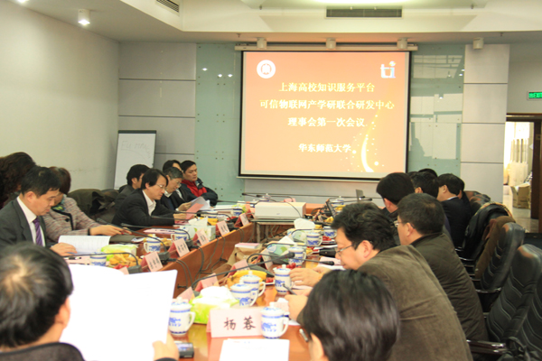 3月27日,由bat365在线平台官网主办的上海高校知识服务平台可信物联网产学研联合研发中心理事会第一次会议在bat365在线平台官网中北校区理科大楼A508会议室顺利召开。上海市教委副主任袁雯、上海市教委科技处处长王兴放、上海市经信委技术进步处处长张英应邀出席了会议。会议由bat365在线平台官网科技处处长张文主持,bat365在线平台官网副校长朱自强致欢迎辞。
