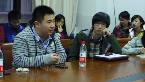 对于出国留学的问题四位学长学姐更是侃侃而谈。邓孟茜学姐作为调剂生,对软件工程兴趣不大,却在团学联的工作中找到了自己在管理方面爱好和潜能,并与本专业合理结合,最终获得了英国三所大学的IT管理方面offer。她告诫同学们想做什么就去做,而不是单单去想,通过理论的收集和实践的积累总结出职业要求并尽全力让自己离梦想更进一步。吴扬学姐则让大家思考三个问题:为什么要出国?自己在未来五年内的人生规划是什么?自己真正想要的是什么?她的出国之路,用她自己的话说:尽管装载了一大堆眼泪,但也有满满的幸福。温岩和高超然学长则分别针对出国留学的准备和转专业方面进行了相应介绍,强调了托福、GRE、GPA和research等对出国的重要性以及如何对即将申请的新专业进行评估。最后高超然学长用一句话鼓励着在场同学:任何事情到最后都是好事,如果不是好事,证明还没到最后。李恒超老师也与同学们分析了09级考研学生的情况,考研有风险,同学们需要对自己的专业能力与复习情况有一个准确的评估,无论是选择出国还是在国内继续深造,一定要坚持自己内心的想法,这样才有动力坚持下去,才能走的更远。