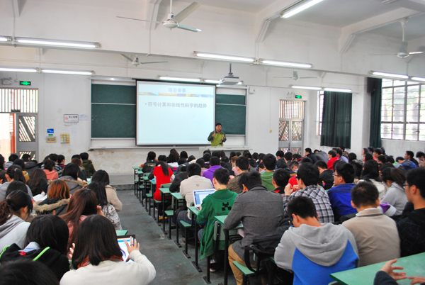 2013年4月10日下午13:30,软件学院10级学生直研宣讲会在新一教室召开。院长何积丰院士、副院长王长波老师和部分学科老师,以及10级全体学生参加此次宣讲会,会议由学院副院长姜宁康老师主持。