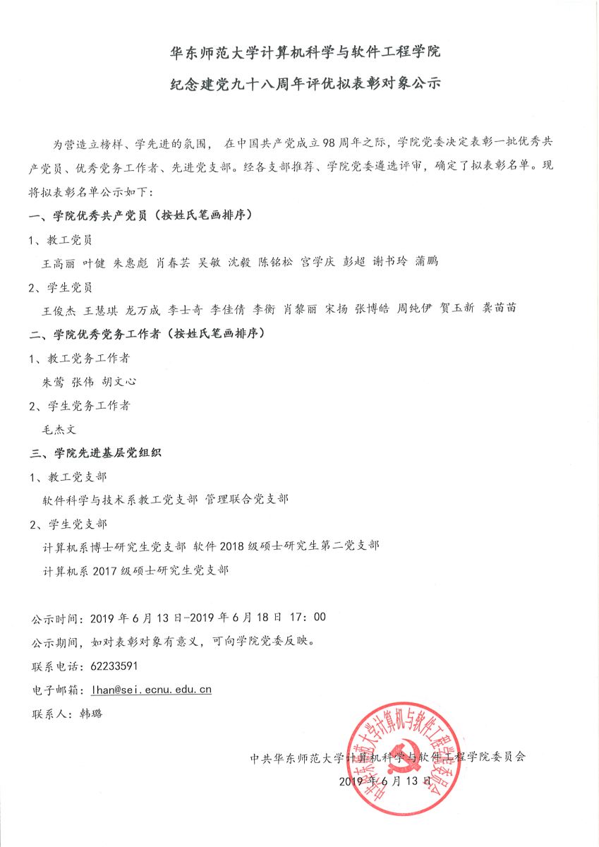 bat365在线平台官网计算机科学与bat365中文官网入口 纪念建党九十八周年评优拟表彰对象公示