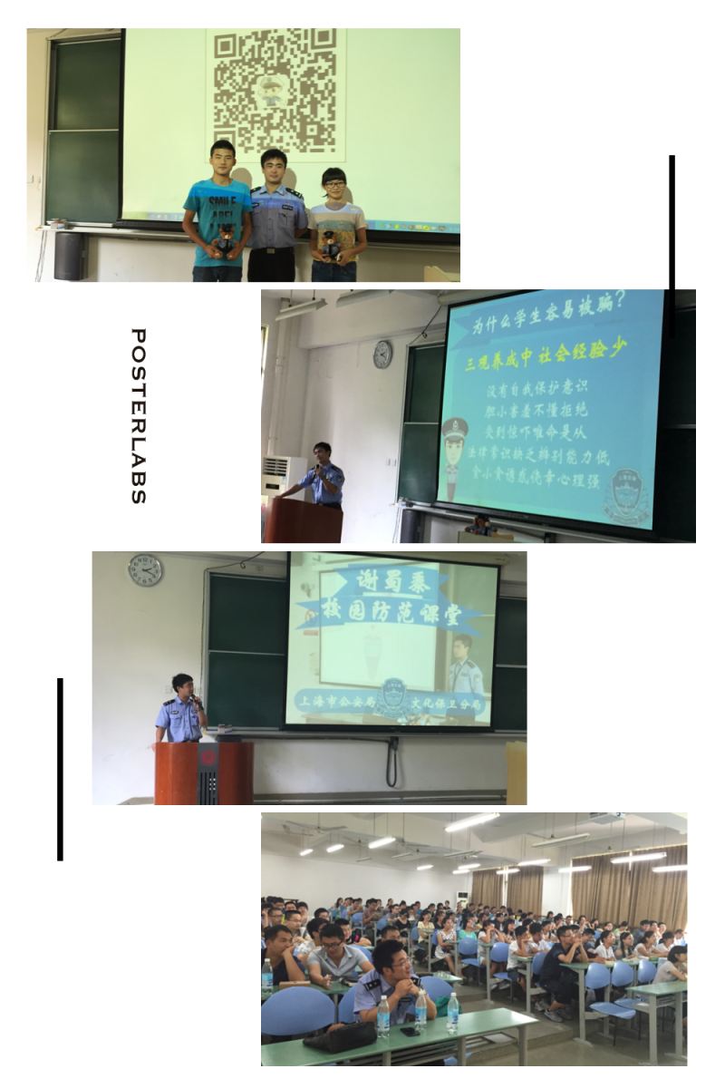 9月10日,学院邀请到上海市文保局的警官前来为新生做校园安全的教育讲座。文保局谢警官从学生身边的小事着手,向在座新生讲解了经常存在的安全隐患,并提醒新生一定要增强安全保护意识、谨防钱财诈骗等。