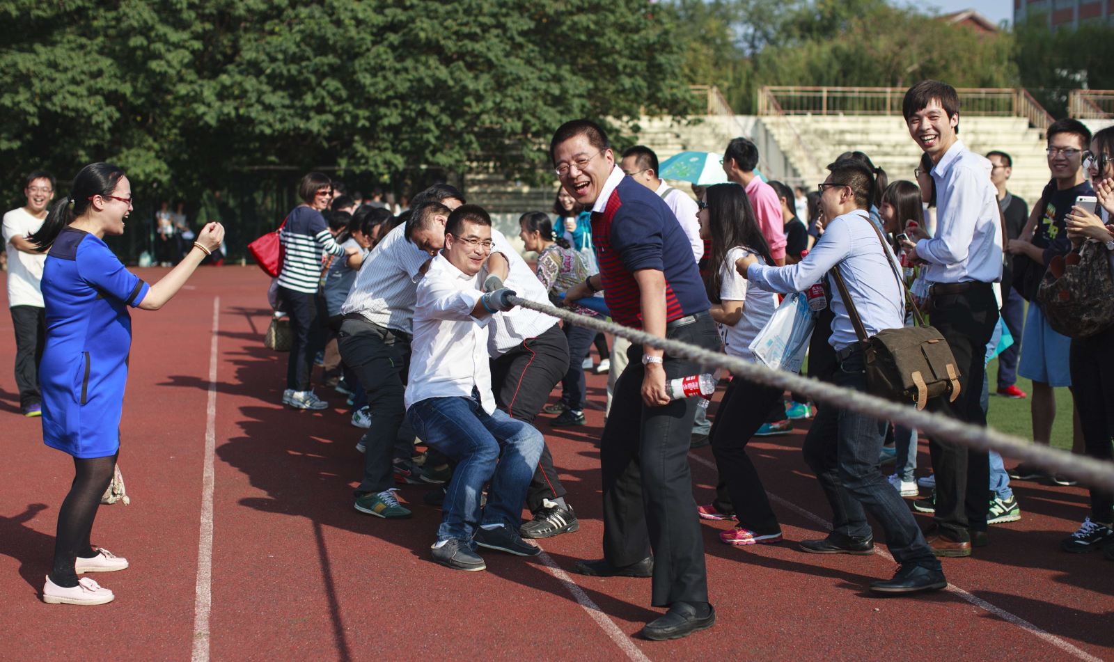 精彩的表演过后,便是实力的角逐。长绳两端,师生“咬牙切齿”鼓足力气,为胜利的荣光拼搏着;跑道上,是百米健儿们的冲刺,是长跑能手们的坚持;沙坑里,选手们为远方的梦想奋力一跃。在这些光芒的背后,我们也看到,是同学们清脆的呐喊声为运动员鼓足了劲,场上场下,是我们一起在前行。