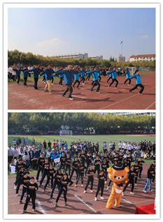 在李书记宣布运动会开幕后,教职工和学生们分别带来了精彩的表演。老师们身着蓝色运动服,为我们带来了动作规范、整齐的广播体操表演;14级同学的一套武术表演一下子抓住了所有人的眼球,刚劲有力的拳术、轻快潇洒的剑术和勇猛灵活的棍术让同学们连连叫好;紧接着,15级同学也进行了舞蹈表演,他们用活泼可爱的动作把快乐传递给大家,令人忍俊不禁。开幕式的最后,院党委副书记洪燕老师宣布了入场式各方阵的得分, 12级联队以一套行进间完美转体的创意获得了开幕式队列的第一名。