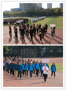 本次运动会开幕式由杨文迪同学和郭东瑞同学共同主持。13点30分主持人宣布运动员开始入场后,由本科生、研究生以及教职工组成的各个方阵依次走过主席台前,他们昂首挺胸,抖擞精神,他们矫健的步伐和嘹亮的口号彰显出我们新学院的活力和朝气。
