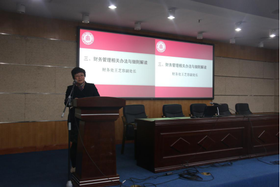之后,学院特别邀请了学校财务处副处长王芝蓉为全院教职工详细解读了财务管理的相关办法及细则;同时也邀请学校财务处副处长曹芳为全院教职工介绍财务处网上预约报销的具体操作办法。