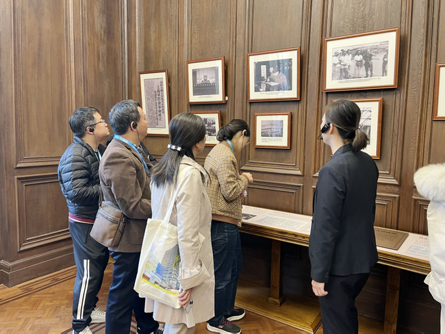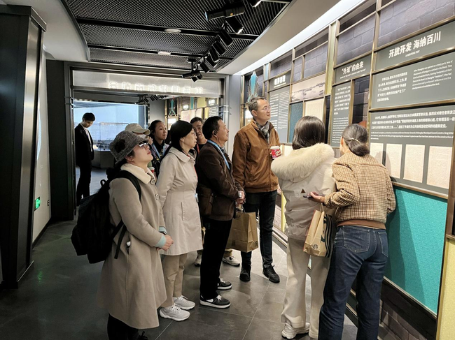 穿过外滩·中央广场,一行人来到上海市人民英雄纪念塔下的外滩党群中心暨外滩历史纪念馆。馆内以珍贵的历史照片为主,辅以具有代表性的档案文献、实物,向观众展示了外滩开埠150年来的历史变化。纪念馆采用现代化多媒体手段,通过数码相框、投影、触摸屏、电子书等向学院教师集中展示了外滩百年沧桑变化。