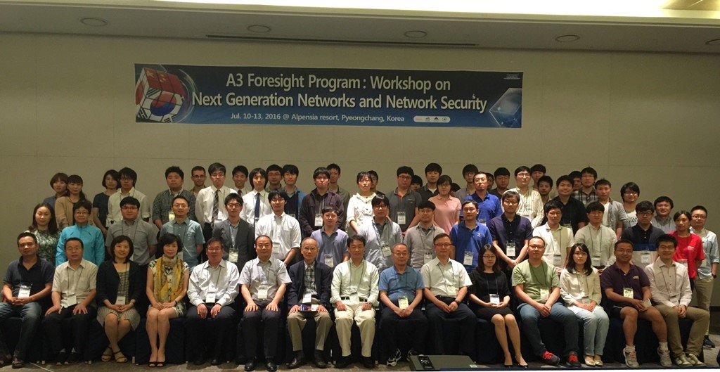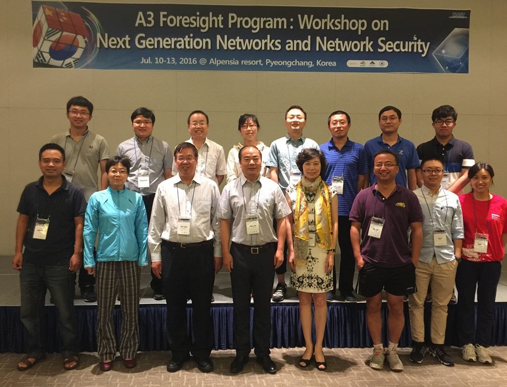 2016年7月10日-7月13日,由中国国家自然科学基金委员会、日本学术振兴会和韩国国家研究基金会三方联合资助的A3前瞻计划“下一代互联网与网络安全”2016年度Workshop学术会议在韩国平昌成功举行。本次Workshop也是自2011年A3项目第一期完成后、2014年起第二期滚动支持的最后一次年度Workshop。