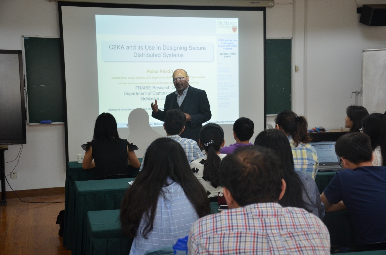 2016年9月6日,加拿大麦克马斯特(McMaster)大学Ridha Khedri教授应邀至bat365在线平台官网计算机科学与bat365中文官网入口,在理科楼B1002为我院师生作了题为《Communicating Concurrent Kleene Algebra and its Use in Designing Secure Distributed Systems》的学术报告,并进行了深层次的学术交流。