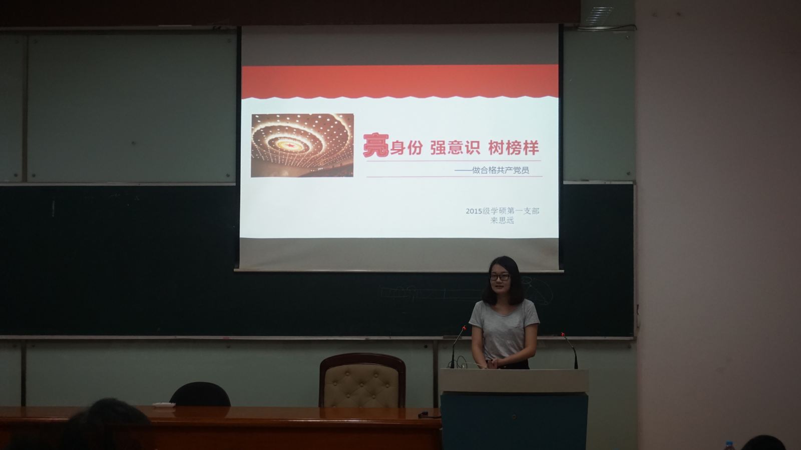 学院2016年度优秀党员代表来思远同学以“亮身份,强意识,树榜样”为主题,与新生党员同志们交流了如何做一名优秀的共产党员。向新生党员们介绍了党支部组织的理论学习活动和支部工作。从而丰富了新生党员的理论知识,加深了新生党员对党性认识的理解,有利于后续党支部工作的开展。