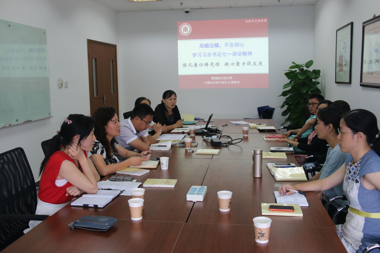 会上,支部书记给每位党员同志下发了支部购买的书籍,对新加入管理联合党支部的老师表示热烈欢迎,并带头讲党课。谢书玲同志首先作了“强化意识铸党性,凝心聚力促发展”党课报告,讲解了“两学一做学习教育内涵及实践路径,希望各位党员同志增强四种意识即政治意识、看齐意识、核心意识和大局意识,做一名合格党员,立足岗位做贡献。随后,她详细解读了习总书记七一讲话精神及现实启迪,并提出了此次组织生活会的讨论议题,希望大家结合实际工作情况谈谈如何践行“两学一做”。