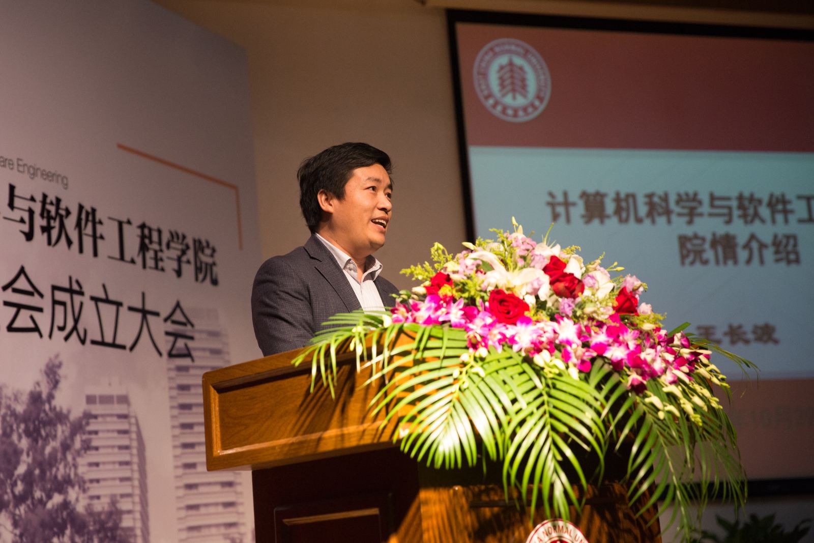 常务副院长王长波介绍学院发展情况,向与会的校友们分享了365官网、历史沿革、学科建设、人才培养、近期要闻等发展状况以及学院的未来发展规划,并表示国际化是计算机科学与bat365中文官网入口的发展目标与理念,始终把人才培养作为首要任务。希望在计算机科学与bat365中文官网入口校友的共同帮助和参与下,将学科发展推向一个新的高度。