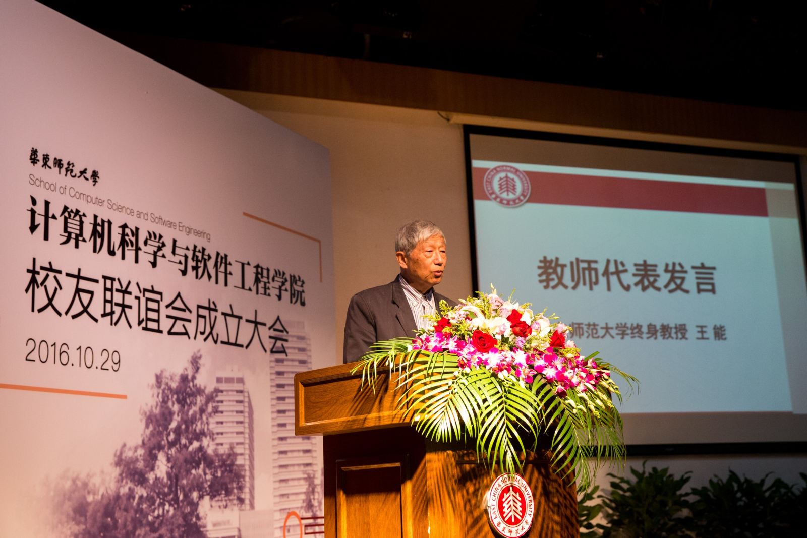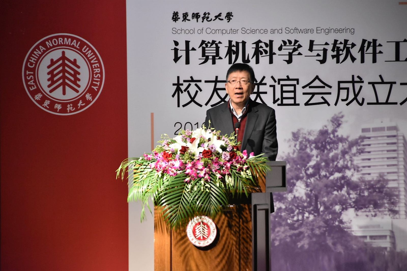 我院院长何积丰院士致欢迎辞,他首先对各位校友的到来表示热烈欢迎,对校友联谊会的成立表示衷心祝贺。在简要回溯学院的历史后,何院长提出希望校友们在信息领域发挥才能,创业创新,取得更大成就。与此同时,也希望校友能起带头作用,给学弟学妹一些指导、扶持,并积极在社会上宣传我院。何院长指出我们计软院的人,走的路虽然艰难,但要坚持,继续努力,希望广大校友今后年年团聚并为学院的建设添砖加瓦,贡献力量。
