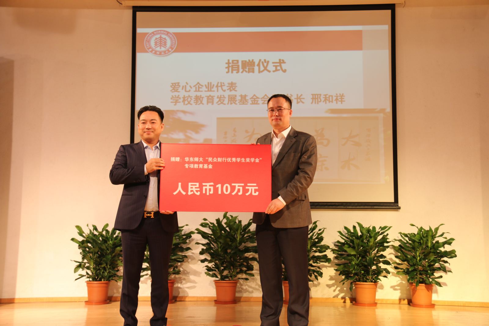 校友会的成立也得到了业内企业的支持。两家爱心企业向学院捐赠教育发展基金——“华荻学生科技英才奖学金”和“民众财行优秀学生奖学金”。学校教育发展基金会秘书长邢和祥接受爱心企业捐赠。爱心企业代表苏州民众财行企业管理咨询有限公司总经理黄伟和上海华荻资产管理有限公司市场运营副总裁施正美致辞祝贺校友联谊会成立。黄伟先生更以自身经历呼吁更多企业家和校友将爱传递。