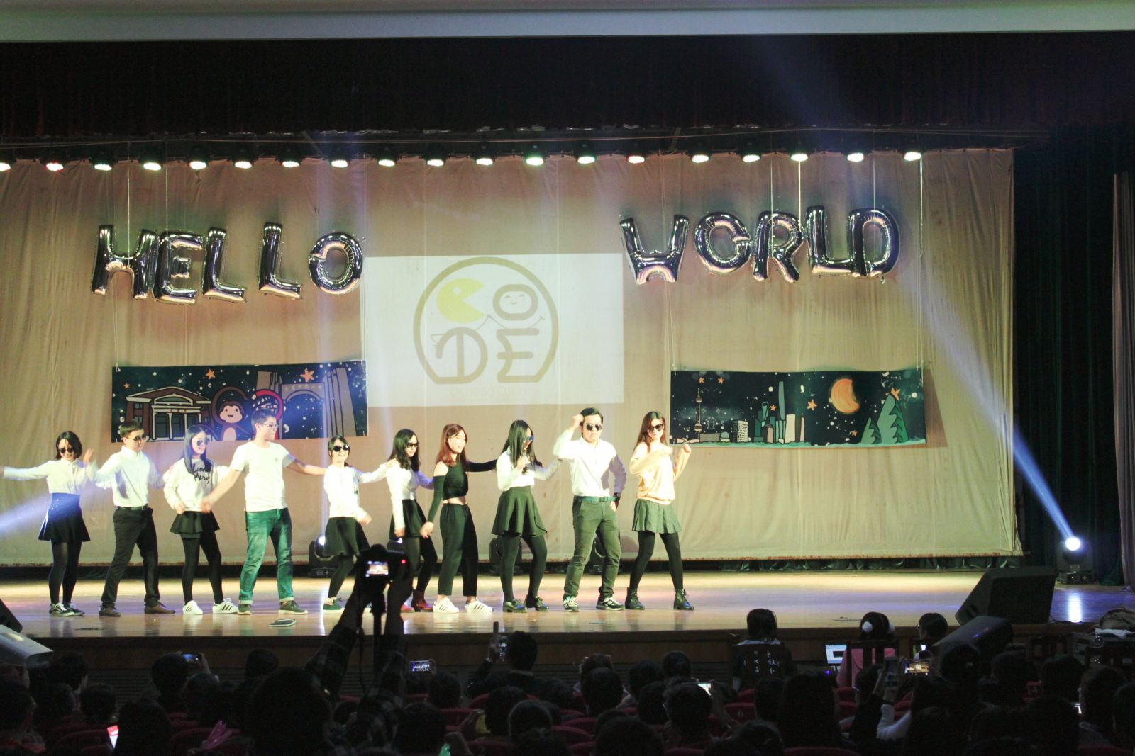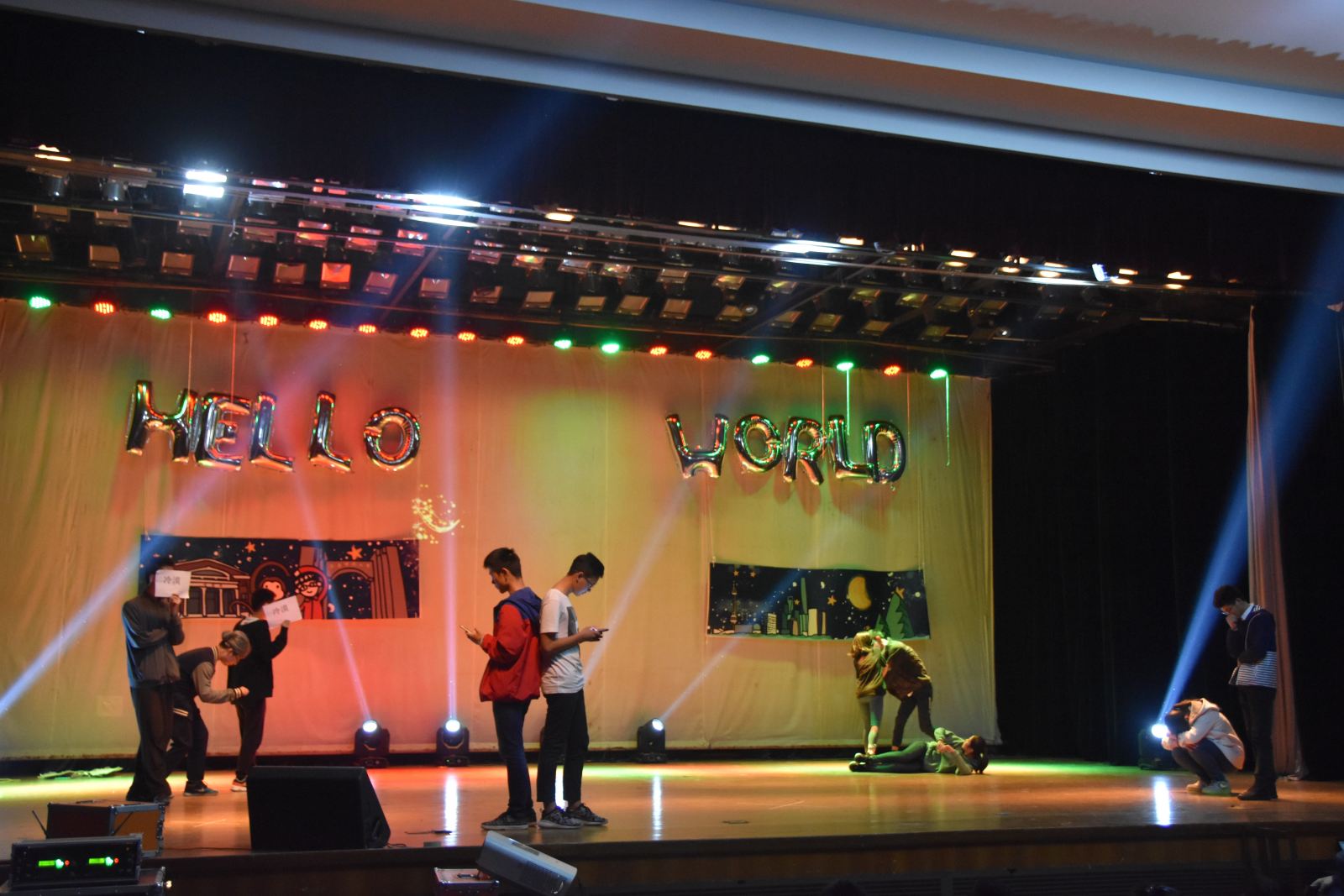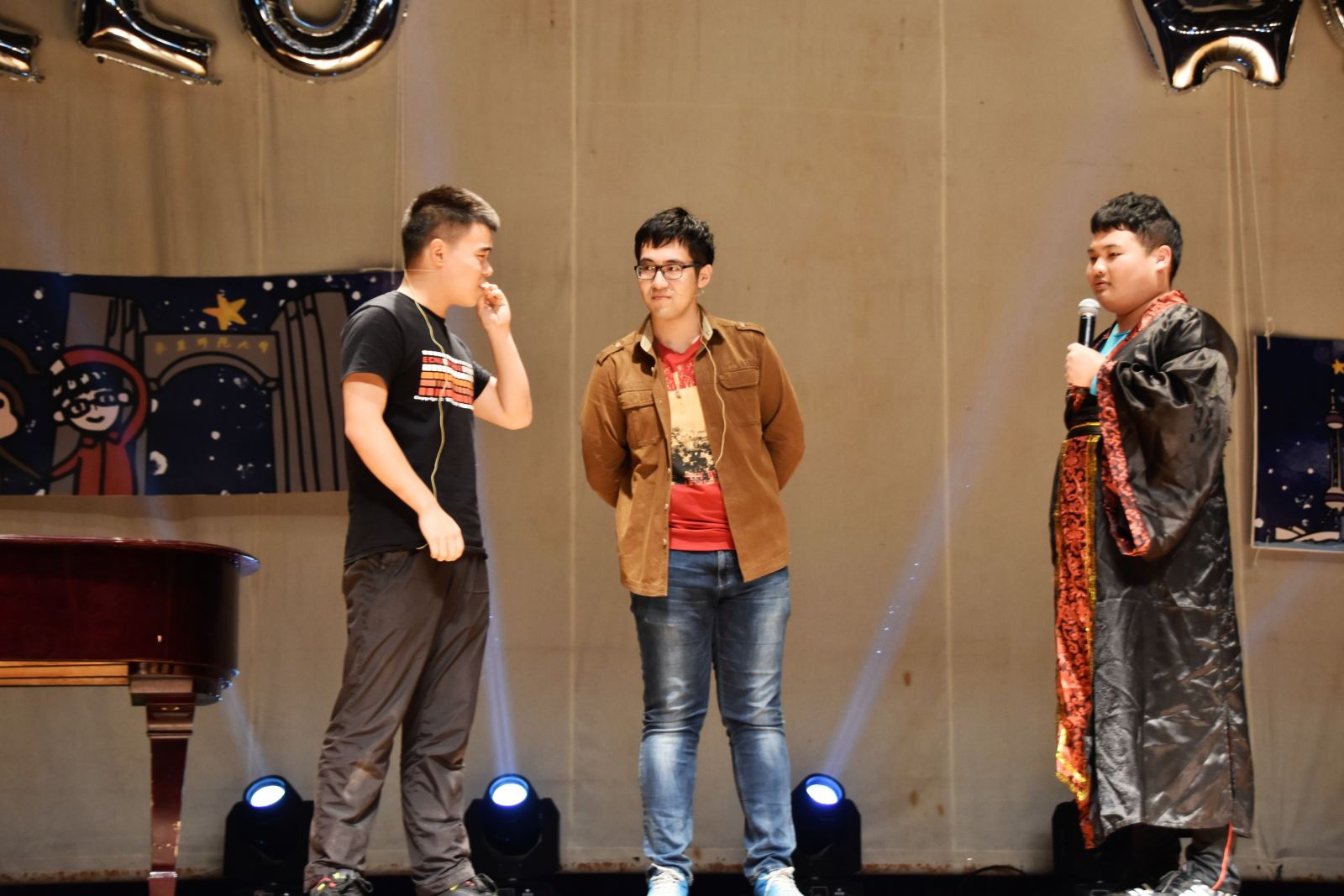 晚会最令人叫绝的节目莫过小品《金正恩仇录》,奇思妙想的剧情,自然流畅的演技,以及将学科的专业术语融入其中的台词,大家在这种熟悉感中捧腹大笑。院系特色浓郁的寝室文化节宣传视频播放后,开学以来一直为新生活动忙碌的团学联部长们也为迎新晚会表演了节目。平时严肃的部长踩着欢快的音乐,跳起了帅气的舞蹈,把观众们的气氛提到了顶点。