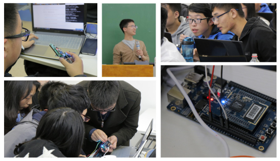随后的操作环节,同学们小试身手,通过代码的编写,控制开发板上小灯的亮灭。经过一段时间的适应摸索,某大二嵌入式方向学生顺利点亮小灯,并上台展示。在第一个实践环节成功点亮小灯后,同学们各尽其能,利用手中的Ruff套件,开发出各具特色的“产品”。我院学生极强的学习能力也获得了公司负责人的肯定。