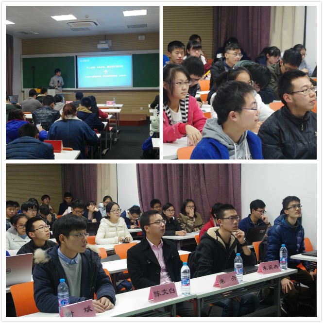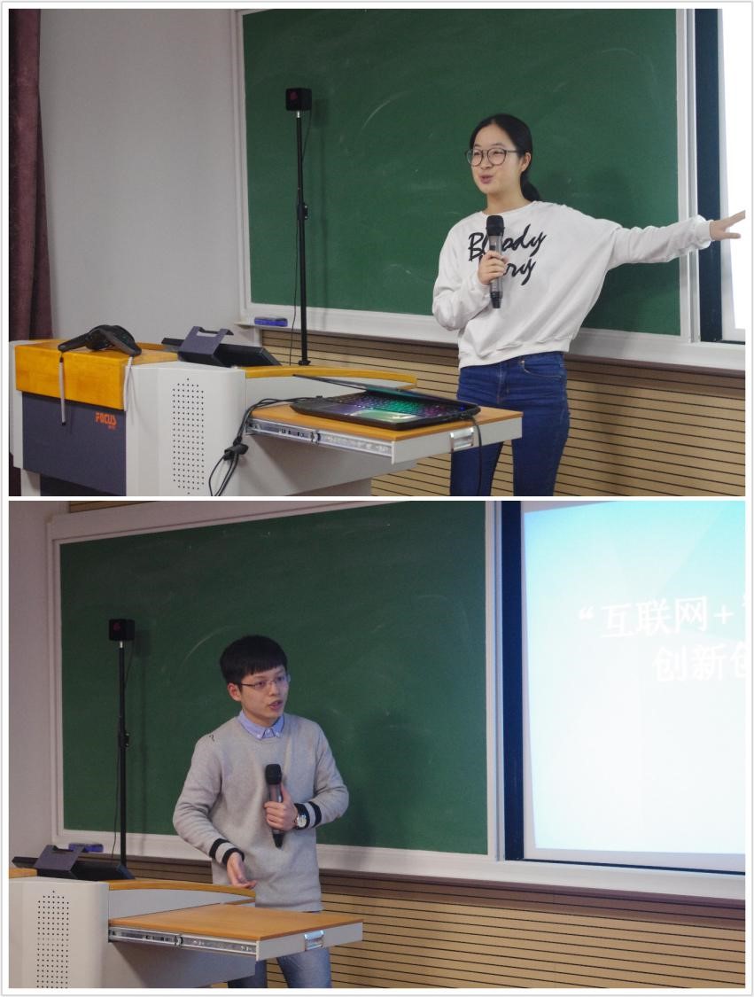 首先向我们分享经验的是来自可以科技的首席运营官COO陈文白同学。可以科技成立于2014年3月,目前致力于CellRobot细胞机器人的研发,至今已获得数百万美元的投资。CellRobot是一款可以自由组合的微型机器人,类似智能版乐高积木,可用于机器人教育、工厂自动化机器人等领域。曾获“挑战杯”全国大学生课外学术作品大赛一等奖。陈文白通过视频向我们展示了细胞机器人的运行过程,然后他从自己加入公司说起,讲述了创业中的各种经历。他的团队在相继经历作品技术瓶颈、资金问题、成员离开等困难后,他们最终获得将产品成功发布。他的经历也让同学们认识到创业者身上的追求梦想的坚持和不畏困难的勇气。