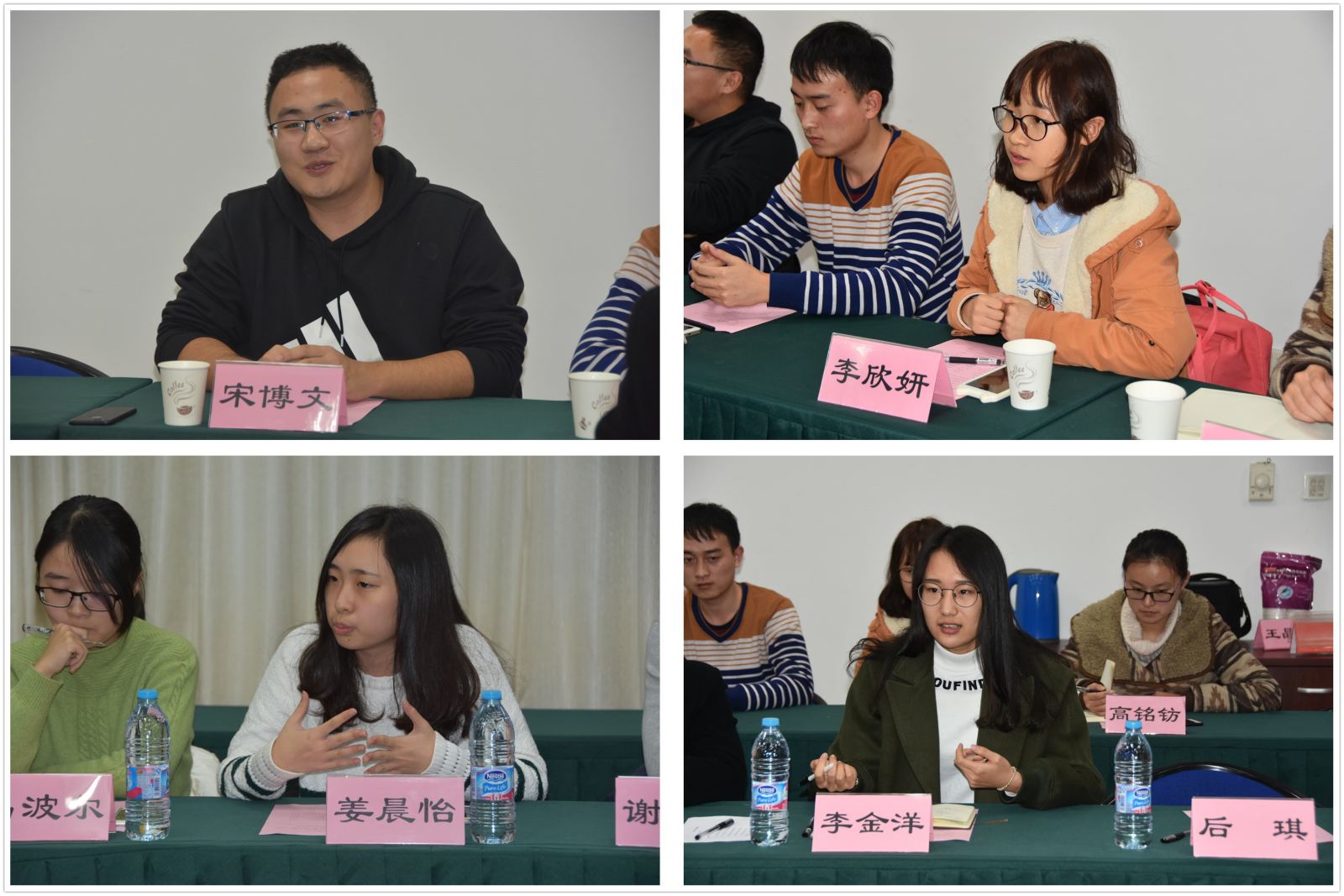 会议伊始,院团委书记朱丹老师首先介绍了学院团委的基本组织架构及团支部活动的开展情况。研究生会代表、学生会代表、各年级团支书代表就团支部活动开展情况、团支部凝聚力、资源信息渠道等发表了自己的观点,并提出了自己的想法和建议。同学们主要的关注点集中在:1、加强各院系之间的联动,提供更加广阔的交流平台;2、增加各支部间展示交流,提供相互学习机会;3、畅通各级团委和团支部信息沟通渠道;4、希望提供更多志愿服务机会。