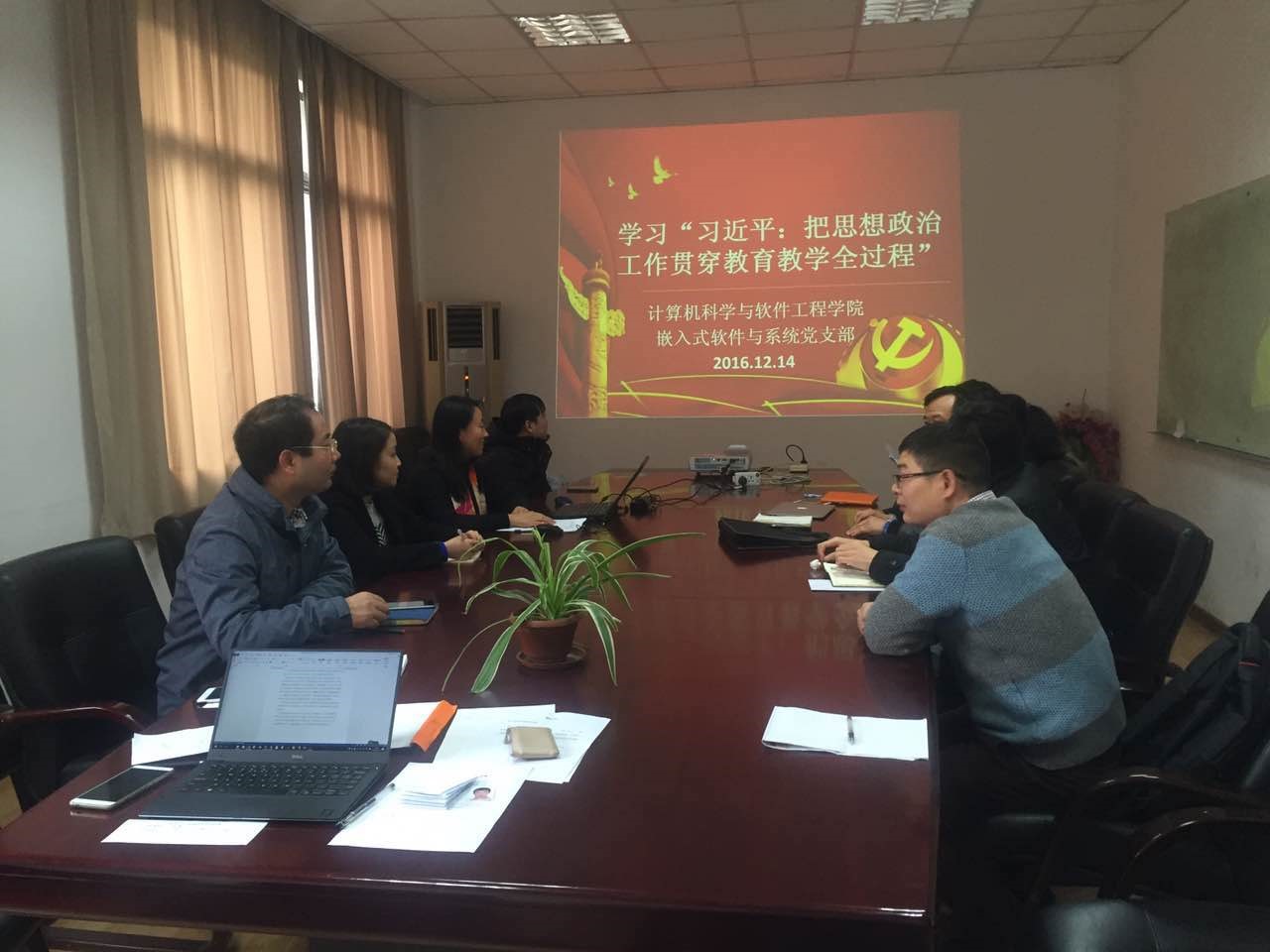 12月14日下午,嵌入式软件与系统系党员同志齐聚数学馆会议室,认真研读讨论习近平总书记《把思想政治工作贯穿教育教学全过程》重要讲话。