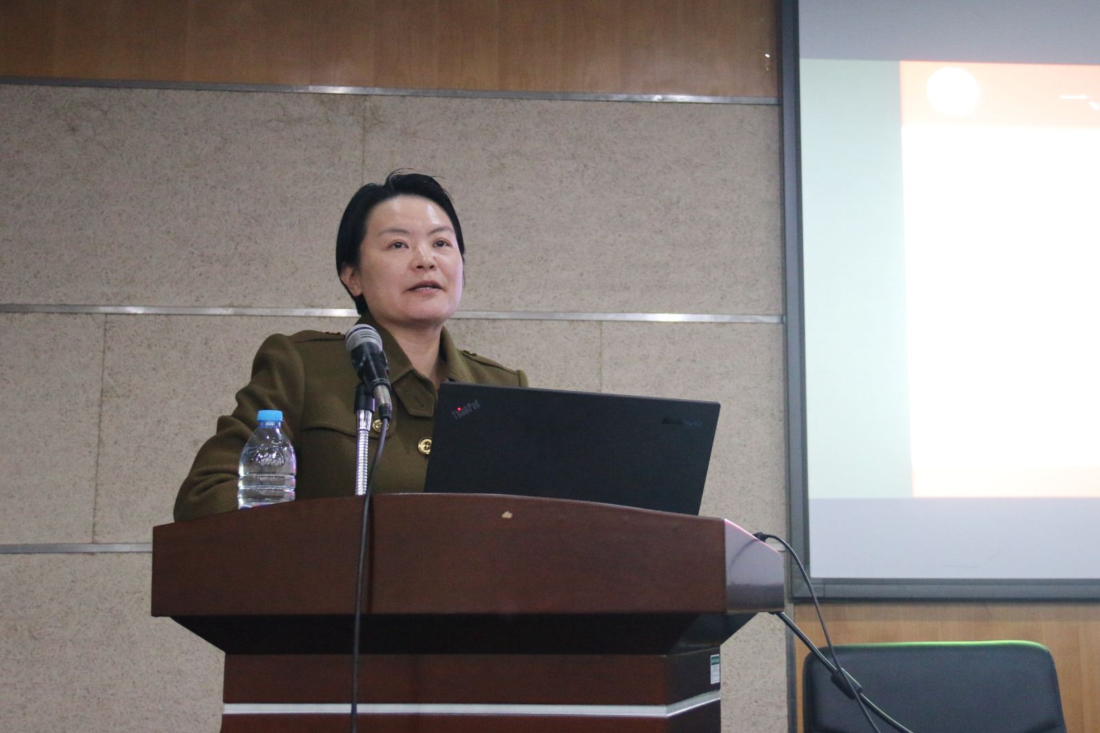 学院特邀校财务处杨蓉处长,为全体教师解读最新的财务规范。杨处长从高校财务管理新背景、中办发(50)号文件、校内财务制度解读、全面实施公务卡事项等方面,特别是与教师日常报销息息相关的差旅费、会议费的最新规定做了耐心细致的解释。