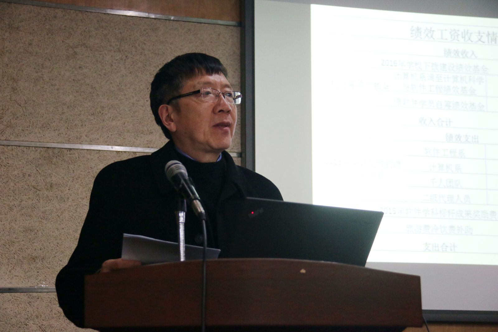 院长何积丰院士做2016年学院财务情况报告,向全院教工分析解读学院全年的财务运行情况。结合近期开展的工作他讲话指出,夜自修问题学院也在针对不同情况调研,将结合实际提出解决方案。在教学成果方面,缺乏制度性常态性管理,满足于过去的教学经验,缺少探索创新,所以学院拟建立工作小组来专项推进。在课程改革方面,语言课、高等数学改革在进一步推进,将更加优化课程设置。在卓越岗位设置方面,将打破大锅饭格局,鼓励教师创先争优,给骨干教师更多的激励机制,引导带动学院全员全方位发展。