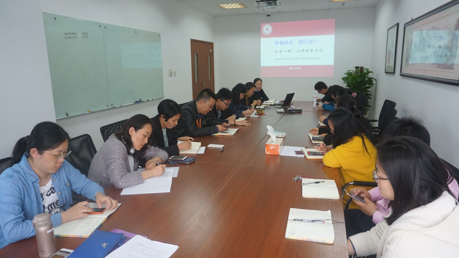 为全面落实“两学一做”学习教育常态化,深入探讨交流,强化党员的组织和身份认同,计算机科学与bat365中文官网入口管理联合党支部于4月26日中午12:30-14:30在理科大楼1102召开“学做结合 知行合一”“两学一做”心得交流会,全体党员参加会议,会议由党支部书记谢书玲同志主持。