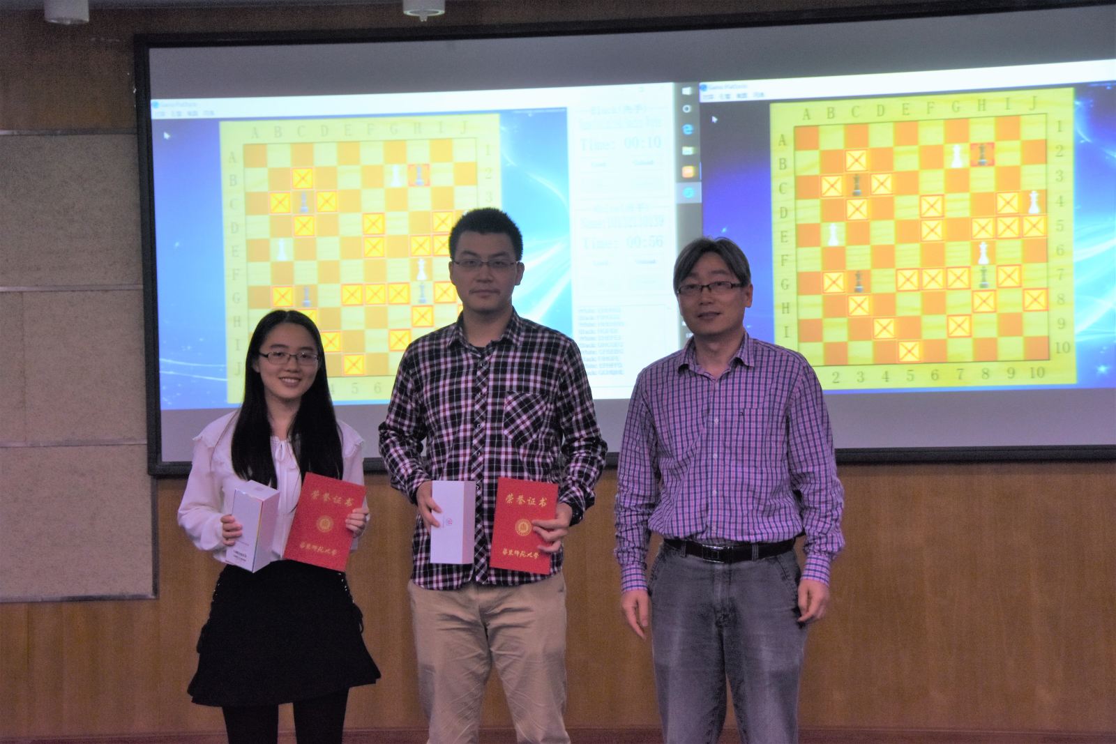 在各大高校优秀项目倾情展示过后,bat365在线平台官网首届趣味棋AI大赛举行现场决赛。此项赛事由计算机与软件学院科技创新协会首次举办,比赛采用亚马逊棋(详细规则可参考/Data/View/2508)。同学们用编写的人工智能程序现场对抗。最终周众欣的人工智能程序以2:1战胜周锐,夺得了bat365在线平台官网首届趣味棋AI大赛的冠军。