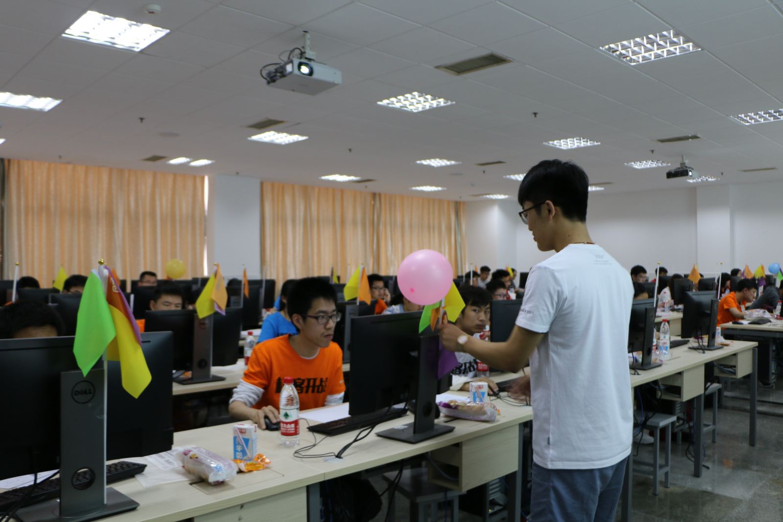 本次比赛分为新生组和专业组,专业组面向江浙沪高校开放报名,新生组面向校内大一新生,同时特别邀请了8位高中生同台竞技。比赛期间,每位选手需要使用1台电脑在规定的4个小时(专业组5个小时)内使用规定的C/C++编程语言编写程序以尽可能多地解决所给出的问题。在选手正确完成一道题目后,工作人员将在其位置上升起一面彩旗或者气球。