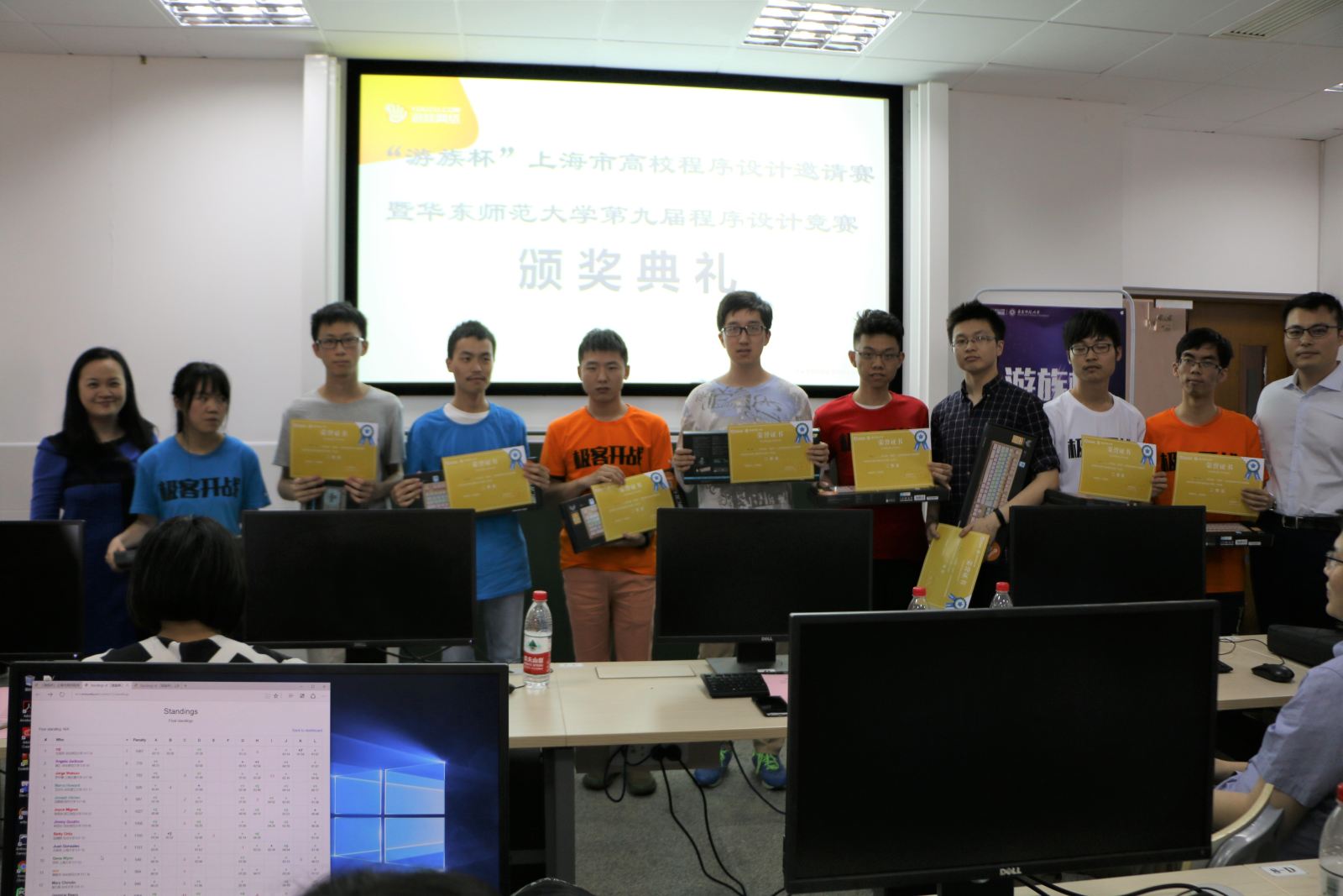 5月20日,上海市高校程序设计邀请赛暨bat365在线平台官网第九届程序设计竞赛在365官网中北赛区成功举行。此项赛事由365官网教务处主办,计算机科学与bat365中文官网入口承办,游族网络股份有限公司冠名赞助。该项赛事旨在提高365官网大学生运用计算机分析问题和解决问题的能力,同时促进上海市高校学生的竞赛交流,彼此促进和提升编程能力。来自上海交通大学、同济大学、东华大学、上海大学、华东理工大学、浙江工业大学、浙江师范大学、南京林业大学等十余所高校约350名学生参加了比赛。游族副总裁胡振凯、技术总监王达、招聘总监蔡衡阳以及365官网教务处副处长徐世猛、计算机科学与bat365中文官网入口党委副书记兼副院长洪燕、副院长蒲戈光等出席了颁奖典礼。
