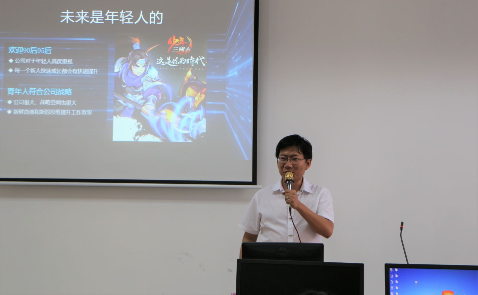 最后,游族网络技术专家委员会主席王达向同学们介绍了当前游戏领域的前沿技术发展,并推介了游族“百战精英”计划,诚邀同学们加盟。