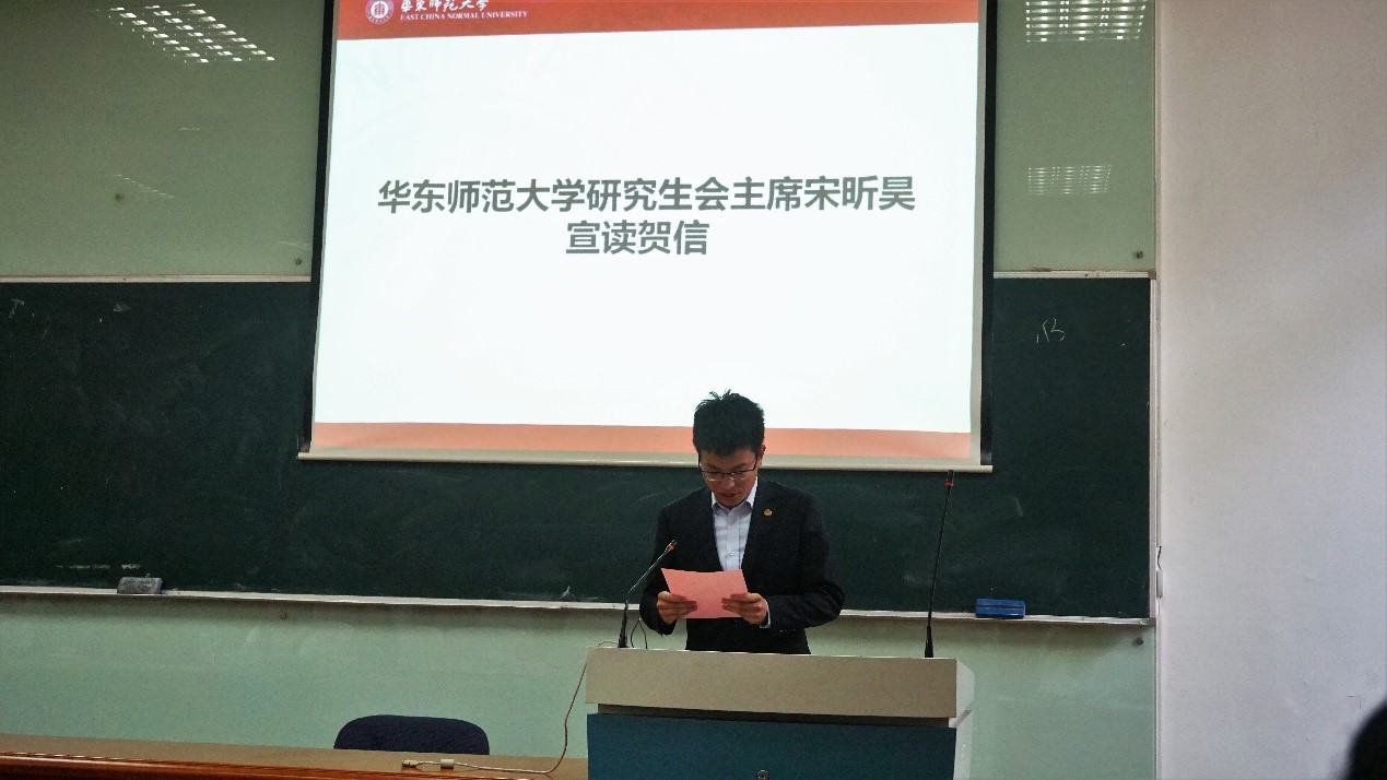 大会在庄严雄壮的国歌声中拉开序幕,首先由校研会代表宋昕昊同学致辞。他代表校研究生会充分肯定了我院研会这一年来的工作,希望我院研会在新的一届主席团的带领下做出更多成绩,同时预祝本次会议取得圆满成功。