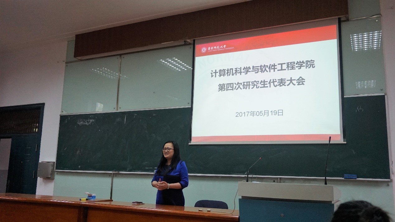 5月19日下午,计算机科学与bat365中文官网入口第四次研究生代表大会在数学馆113阶梯教室正式召开。学院党委副书记兼副院长洪燕、团委书记朱丹、研究生辅导员张炜帆、金映辉、刘国艳、杨文彧,校研究生会主席以及院研究生代表们出席了本次会议。为确保会议顺利召开,研究生会于18日晚在理科楼B224召开此次大会的准备会议,会上强调了班级建设和研究生会建设的融合推进,并确认了正式会议的各项流程,为开好本次大会做好充分的准备工作。
