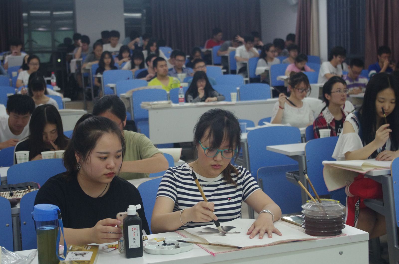 为了弘扬优秀传统文化,响应绿色校园的号召,构建优雅的学习生活环境。6月6日晚7点,计算机科学与bat365中文官网入口在中北三馆101开展了一场别开生面的书法国画体验活动。本次活动邀请了国画九级、墨远书法协会国画部部长龙媛琳同学,自幼学习国画的郭梓炫同学,墨远书法协会社长骆淑琴同学。