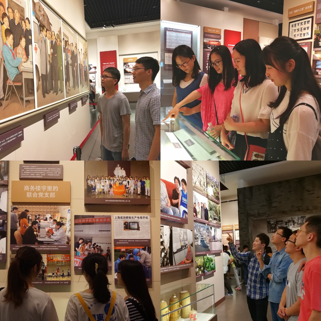 “外出实践”环节在6月7日下午进行,毕业生党员、部分学生党员和入党积极分子代表一起前往上海凝聚力工程博物馆参观,作为毕业生党员毕业前的最后一次集体活动,活动以重温历史、传承交流为主线,同学们参观了博物馆中“应运而生”、“百花齐放”、“深化拓展”、“融合互动”及“‘凝聚力工程’在上海”五个展区,其中不乏大量的照片、文稿资料,博物馆中还展示了不少已退出大多数上海家庭的煤球炉、大草帽、老蒲扇、靠背竹椅等。而那些让大家记忆深刻的棚户区也成为了博物馆展示变迁的主角,得以在展厅中以微缩全景的方式重现,再现了昔日居民们蜗居的场景和家长里短的生活,走进博物馆,身临其境,使同学们对党员干部为民解难、为党分忧的“凝聚力工程”有了更直观、更感性的认识,大家在深深感慨今昔生活对比的同时,被以华阳街道为代表的党的凝聚力工程二十年每一步足迹所感染,步步是情,页页精彩,不由肃然起敬,感慨万千。