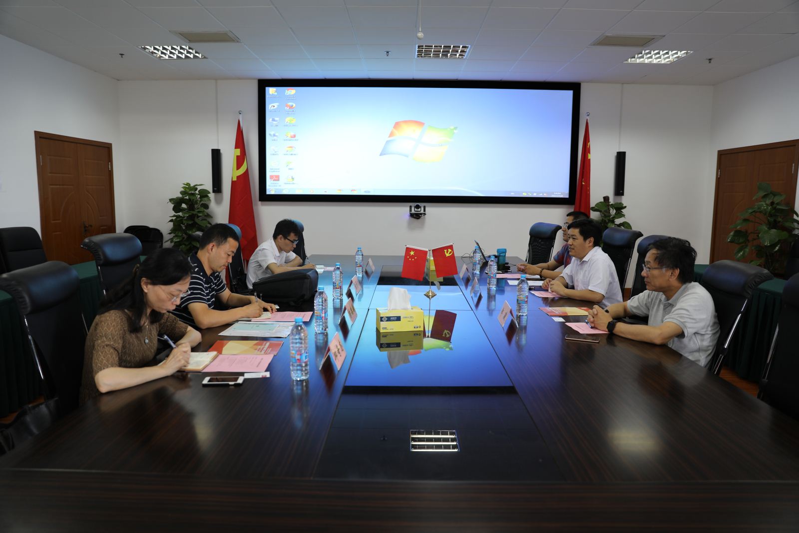 2017年7月4日,武汉理工大学计算机科学与技术学院副院长袁景凌携系主任、副主任及骨干教师代表来计算机科学与bat365中文官网入口调研。学院常务副院长王长波、计算机科学与技术系主任贺樑、计算中心主任郑骏参与了此次调研。学院常务副院长王长波首先对武汉理工大学一行的来访调研表示欢迎,介绍了学院的基本情况以及学院特色工作。