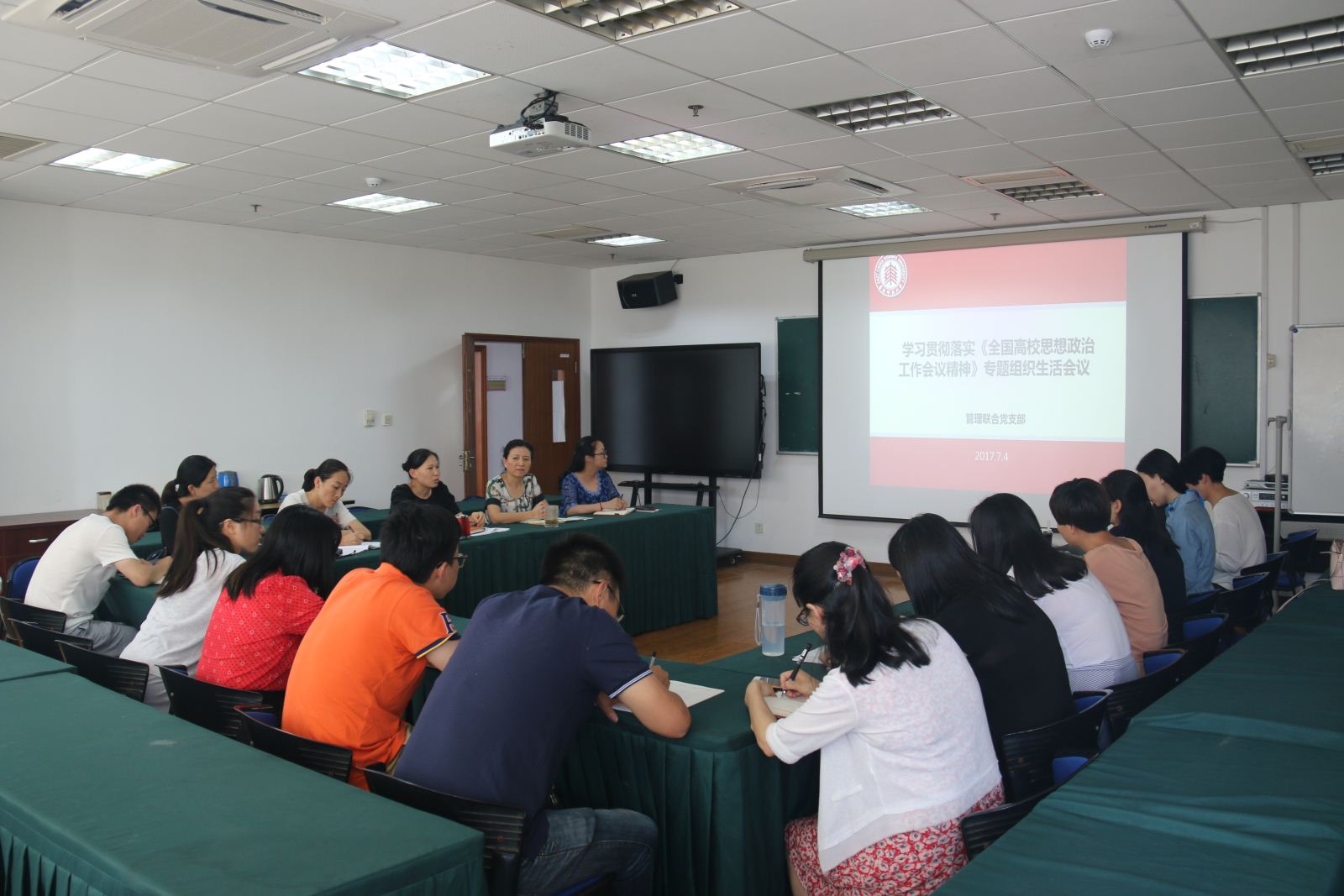 7月4日下午,计算机科学与bat365中文官网入口管理联合党支部关于学习贯彻落实全国高校思想政治会议精神的专题组织生活会在理科大楼B1002室举行,会议由党支部书记谢书玲同志主持。本次会议聚焦高校思政工作特点,围绕学院学风、教风,就如何贯彻落实全国高校思政工作会议精神展开深入交流。